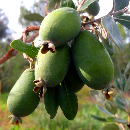 La feijoa è il frutto che viene prodotto dalla Feijoa sellowiana detta anche Acca sellowiana. La pianta è un arbusto sempreverde originario degli altipiani montani dell’America Latina, principalmente del Brasile meridionale e del nord dell’Argentina. Appartiene alla famiglia delle Myrtaceae e può arrivare fino ai sette metri di altezza. Le foglie sono di colore scuro e lucente, sono spesse e raggiungono i cinque centimetri di diametro, mentre i fiori sono abbastanza piccoli e di colore bianco e di un rosa tendente al viola, ma caratterizzati da stami di colore rossastro. Sia le foglie che i fiori vengono utilizzati in cucina: le foglie essiccate per preparare tisane, i fiori trovano spazio in insalate oppure vengono degustati da soli per il loro sapore dolciastro. Anche se originaria del Sud America, quindi avvezza a un clima quasi tropicale, la feijoa resiste anche a temperature che scendono di qualche grado sotto lo zero. Questo ne ha permesso la coltivazione e la diffusione anche in Italia e in altre regioni a clima temperato.