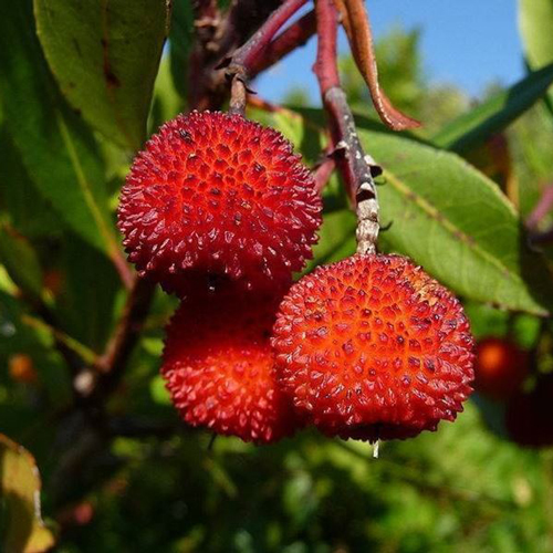 Albero o arbusto sempreverde originario dell’Irlanda e dei paesi che si affacciano sul mediterraneo, che può raggiungere i 9-10 metri di altezza, ma che più comunemente rimane di dimensioni intorno ai 4-5 metri. Ha corteccia grigio-marrone, che si sfoglia; le foglie sono oblunghe-lanceolate, dentate, verde scuro e lucide, simili a quelle dell’oleandro. A fine estate produce innumerevoli fiorellini bianchi, in alcune varietà soffusi di rosso o di verde, a forma di campana; nello stesso periodo maturano i frutti, che quindi impiegano quasi un anno intero per maturare, la particolarità del corbezzolo consiste nel fatto che sulla stessa pianta si possono trovare frutti maturi e fiori contemporaneamente. I frutti sono tondeggianti, giallo-rossi, dolci, con scorza leggermente rugosa, quando sono maturi tendono a cadere dall’albero. Il nome botanico del corbezzolo e Arbutus unedo L. Si tratta di un piccolo albero sempreverde che raggiunge un’altezza massima di dieci metri. Alcune varietà sono anche più piccole. La pianta, appartenente alla famiglia delle Ericaceae, è originaria del bacino del Mediterraneo, dell’Irlanda, dell’Asia e delle Americhe. La corteccia dell’albero si presenta rossastra e tende a scurire con l’avanzare dell’età.