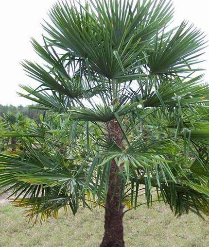 Palmacee cespitose, fusti eretti con squame, foglie palmate ampie e aperte a ventaglio. Comincia a produrre nuovi stipiti dopo tre-quattro anni.