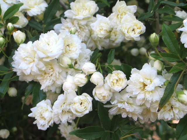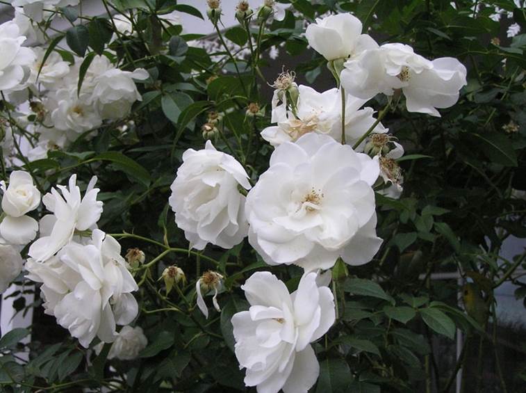 La rosa Banksiae Alba Plena è una sarmentosa dall’incredibile vigoria, capace di raggiungere dimensioni importanti superiori anche ai 10 metri. Presenta inoltre uno sviluppo rapido e un’elevata rusticità alle patologie e alle intemperie. La fioritura è unica, prolungata e davvero molto generosa ed avviene precocemente nel mese di maggio. E’ caratterizzata da vegetazione fitta e coprente, caratteristica che la rende ideale per coperture di grandi superfici. I fiori sono doppi, di colore bianco puro, riuniti a grappolo, dalla caratteristica forma a pompon.