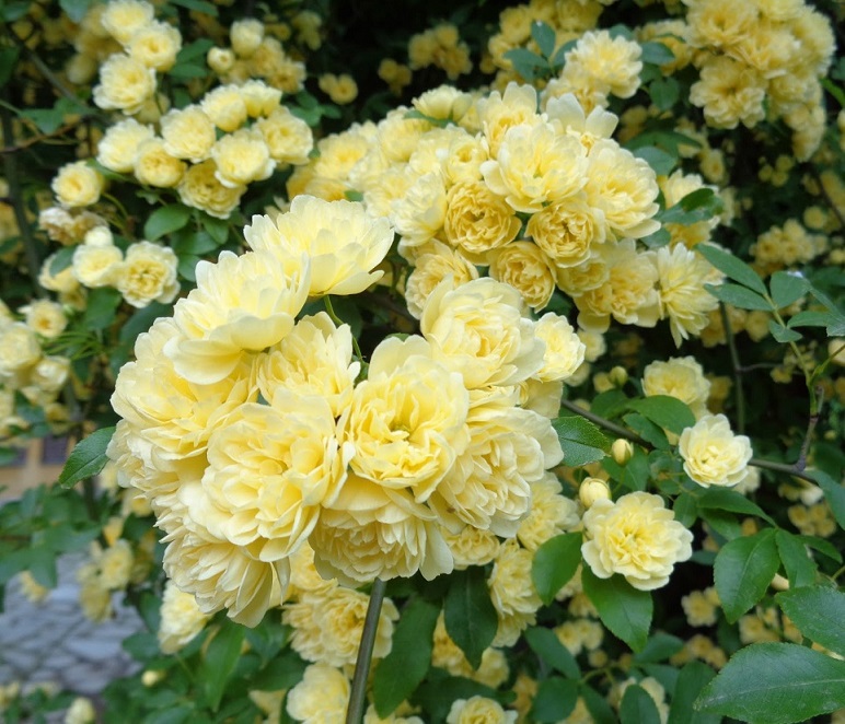 La rosa Banksiae Lutea differisce dalla Alba Plena per il colore dei fiori, i quali si presentano di color giallo acceso. La pianta presenta uno sviluppo rapido e un’elevata rusticità alle patologie e soprattutto alle intemperie, risulta essere infatti la meno sensibile al freddo tra le Banksiae. Può raggiungere anche i 13m di altezza. La fioritura è unica, prolungata e molto abbondante. E’ una rampicante molto rustica, adatta per realizzare pergole, coprire muri e grandi recinzioni. Come le altre Banksiae è priva di spine.