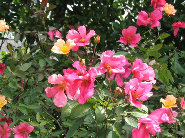 Chinensis Mutabilis ha colori cangianti che passano dal rosa al giallo, bianco, dall'ocra al violetto. I fiori sono semplici, 4-8 petali, con diametro di 7-8 cm. Pianta dal duplice portamento, si può coltivare sia come arbusto da siepe, 110 cm, che come rampicante raggiungendo i 3 mt di altezza per quasi 2 di larghezza. Ha un fogliame verde scuro lucente ed è leggermente profumata. Tollera le posizioni in ombra.